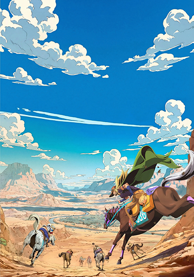 На бескрайних просторах американского Дикого Запада разворачивается грандиозное состязание, которое войдет в историю как величайшая гонка всех времен. Тысячи смельчаков собираются в Сан-Диего, чтобы принять участие в этом захватывающем приключении. Их цель — преодолеть более шести тысяч километров, чтобы завоевать главный приз в пятьдесят миллионов долларов. Эпоха, когда лошади были основным средством передвижения, уходит в прошлое, и теперь участники могут использовать любой транспорт по своему усмотрению. Их ждут невероятные испытания: каждый день им предстоит преодолевать огромные расстояния через бескрайние и неизведанные пустоши. Эта гонка, известная как Steel Ball Run, обещает стать настоящим испытанием на выносливость, мужество и находчивость.